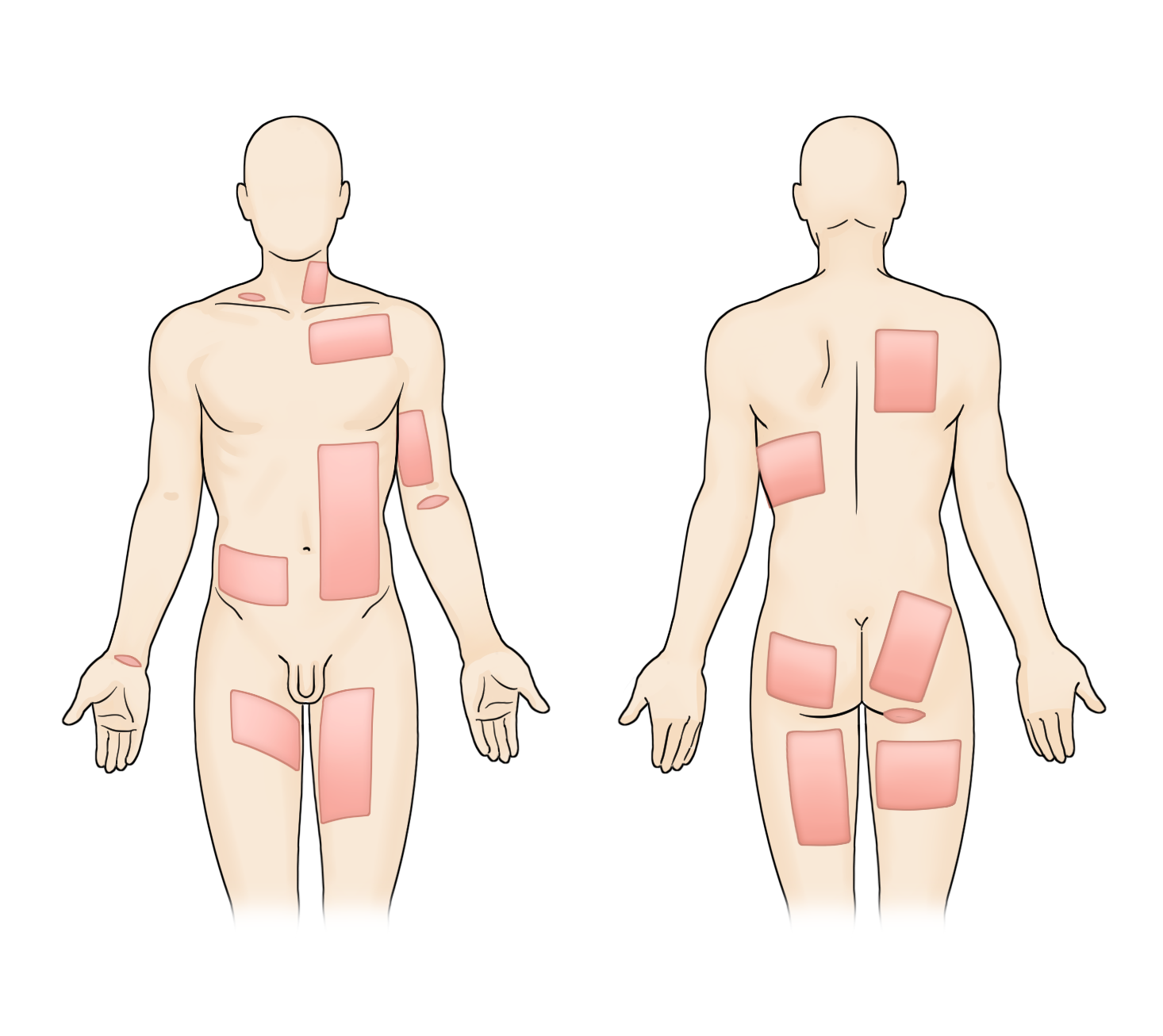 ② 피부 제공 부위를 결정합니다. 보통 눈에 잘 띄지 않는 엉덩이나 허벅지를 가장 많이 사용한다. 피부 결손 부위의 위치에 따라 최대한 비슷한 색을 가지는 부위를 선택하게 되는데 얼굴 부위는 쇄골 주변이나 두피에서 채취하고 그 외에 사지나 몸통은 엉덩이, 허벅지, 배 등에서 채취하게 됩니다.