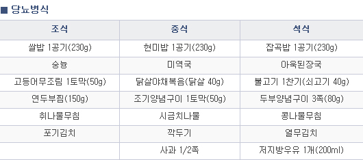 당뇨식, 열량조절식, 균형식