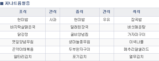 고기, 생선, 두부 등의 양질의 단백질 식품, 신선한 채소류, 과일류